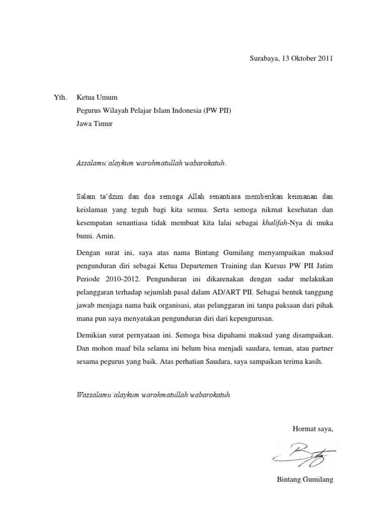 Tak ada yang dapat mencegah apabila suatu keputusan telah dibuat oleh seseorang dari hasil pertimbangannya sebagai buah pikiran. Nov 30, 2018 · dalam surat ini saya lampirkan juga: (company name) (complete address) dear. 10/06/2018 · contoh surat pengunduran. Nah, jika kamu ingin mengundurkan diri dari pekerjaan atau jabatan kamu saat ini, kamu bisa.